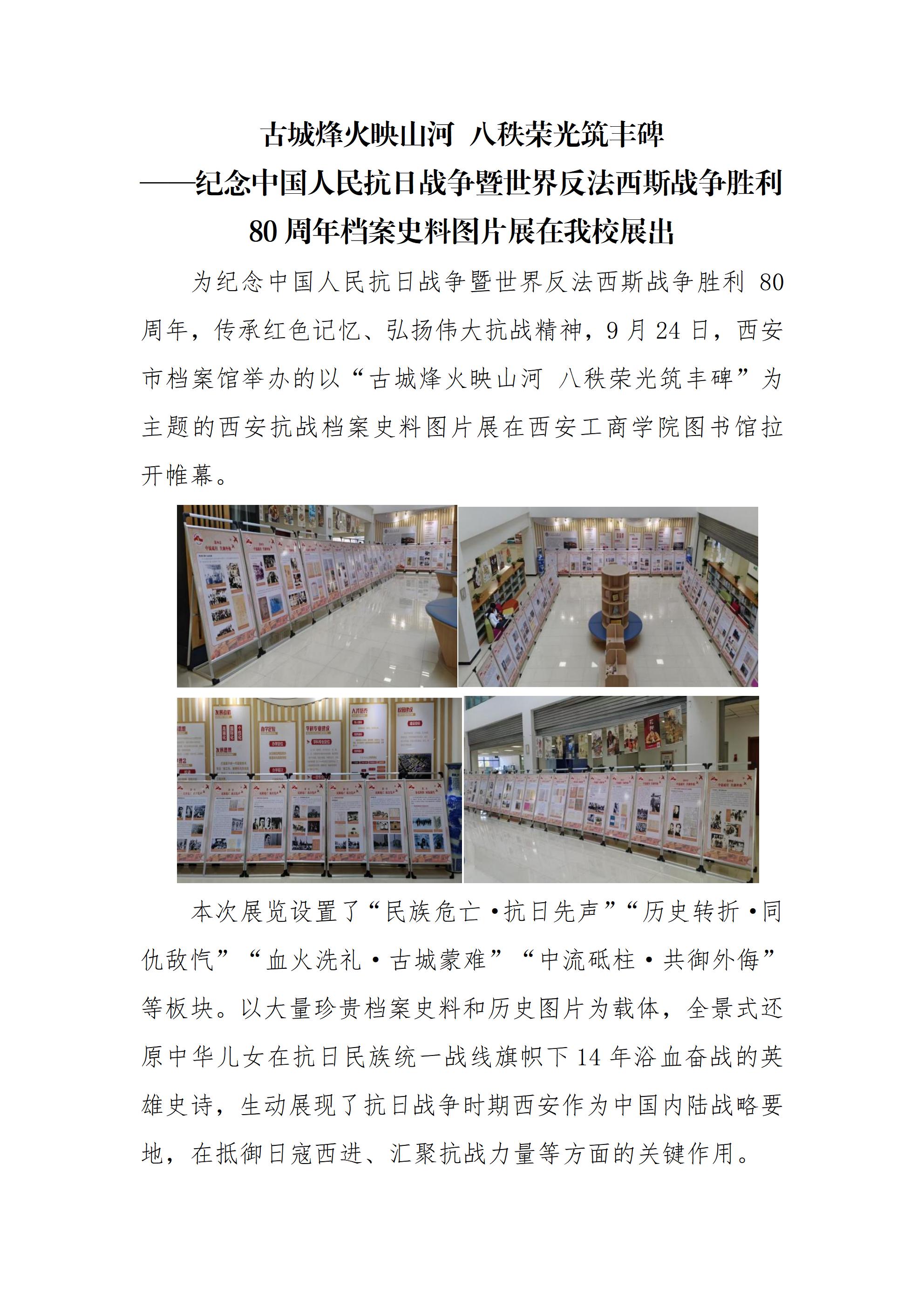 古城烽火映山河 八秩荣光筑丰碑 ——纪念中国人民抗日战争暨世界反法西斯战争胜利80周年档案史料图片展在我校展出