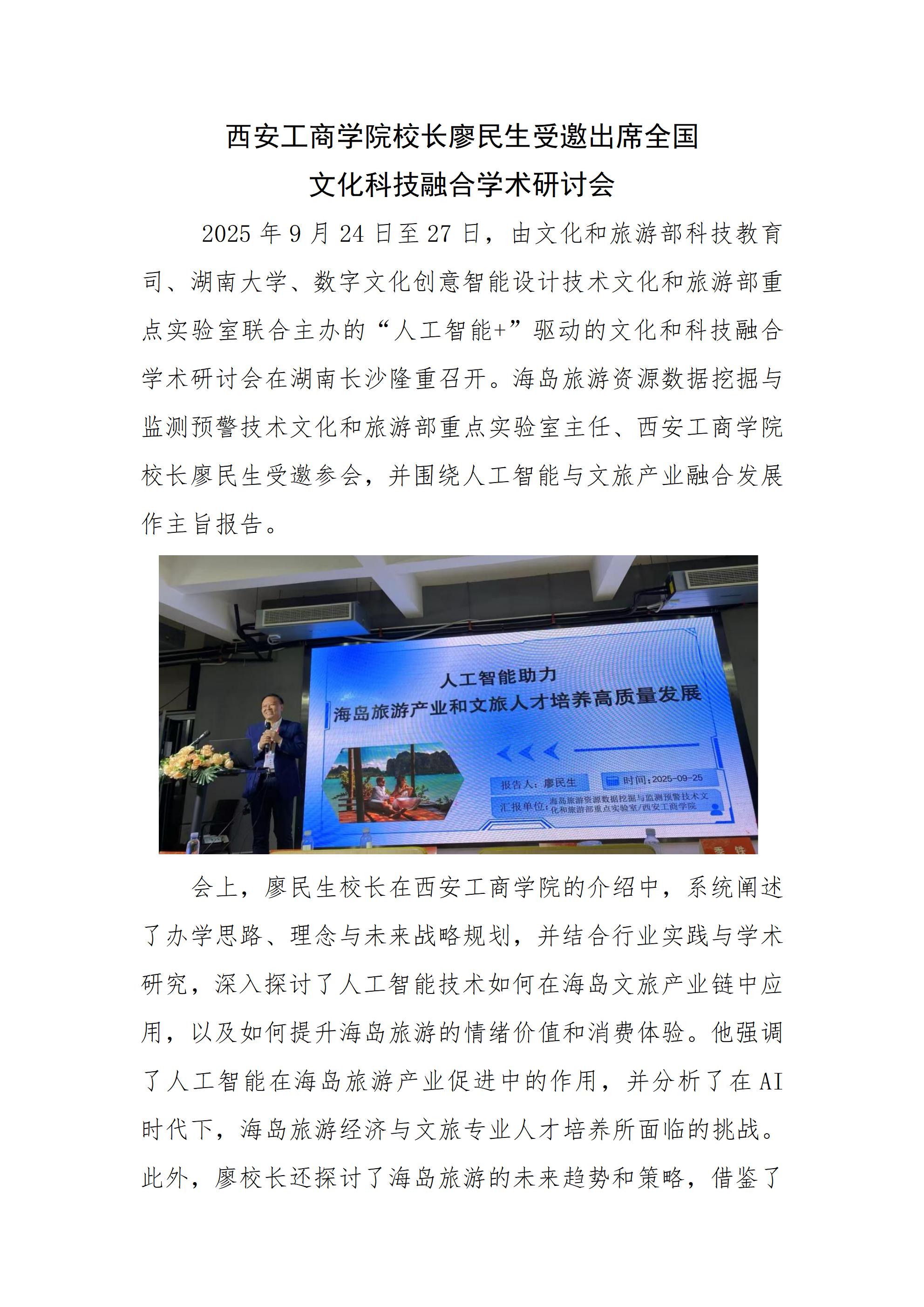 西安工商学院校长廖民生受邀出席全国 文化科技融合学术研讨会